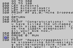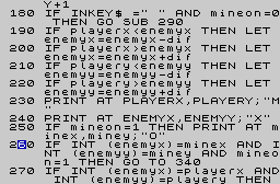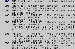 Minimal Checks: For example, in this game, you can set the skill level to 0! Pointless, since the alien doesn't move, so you can't win, so you're stuck in an endless loop. The program doesn't even warn you of this. However, it could have been worse - "Break into the program and change the numbers in lines 190 to 220 to change the difficult level" was only one thought away.