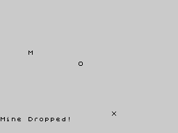 A simple "M" for the player, and "O" for the mine, and "X" for the alien. Just thank your God that he didn't use (arrrggghhh!) full-stops for bullets! (Only because there's no shooting).